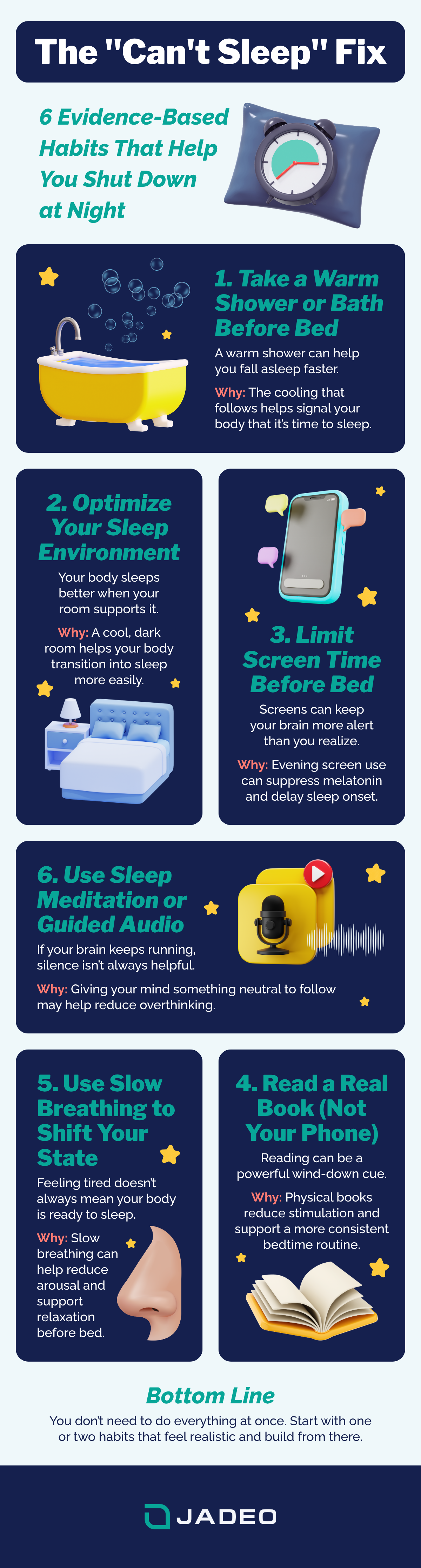 4. Haghayegh, Shahab, et al. “Before-Bedtime Passive Body Heating by Warm Shower or Bath to Improve Sleep: A Systematic Review and Meta-Analysis.” Sleep Medicine Reviews, vol. 46, 2019, pp. 124–135. pubmed.ncbi.nlm.nih.gov/31102877/.